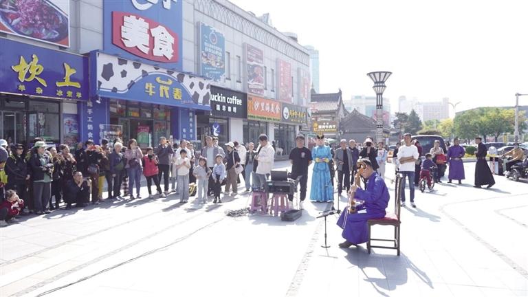 “没想到国庆期间来塞上老街还能看上这么热闹的演出!”来自包头的游客塔娜一手牵着孩子,一手举着手机记录着这难忘的时刻,“原本只是想带孩子来感受呼和浩特的旧时建筑风情,却意外赶上了精彩的主题演出。”