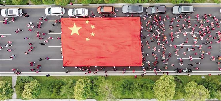 “红歌庆国庆 万人游赛罕”:在国旗传递中激荡爱国情怀