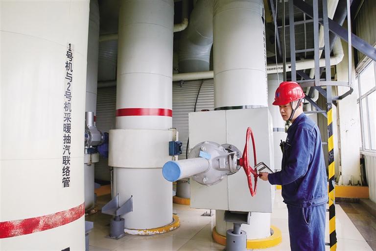 华能北方公司金桥热电厂的工作人员在检查设备。