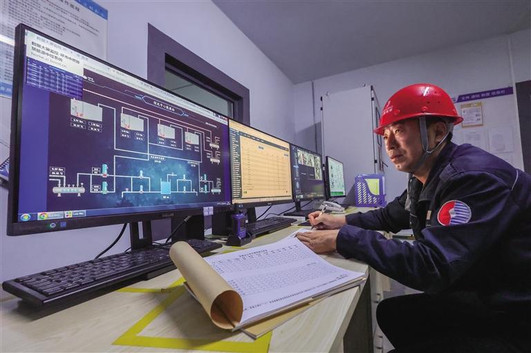 呼和浩特市赛罕区学苑东街万正广场呼市中燃供热分公司中控调度中心调度员在实时监测数据。