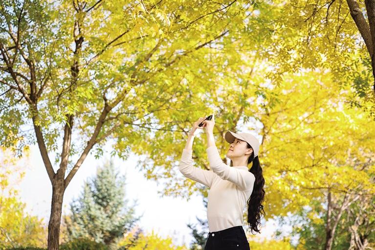 “今天特意带着父母来拍秋景写真。当看到公园内保留的落叶,我还纳闷为什么没有全部清扫?原来是公园工作人员的用心之举,值得称赞。”游客白先生说。