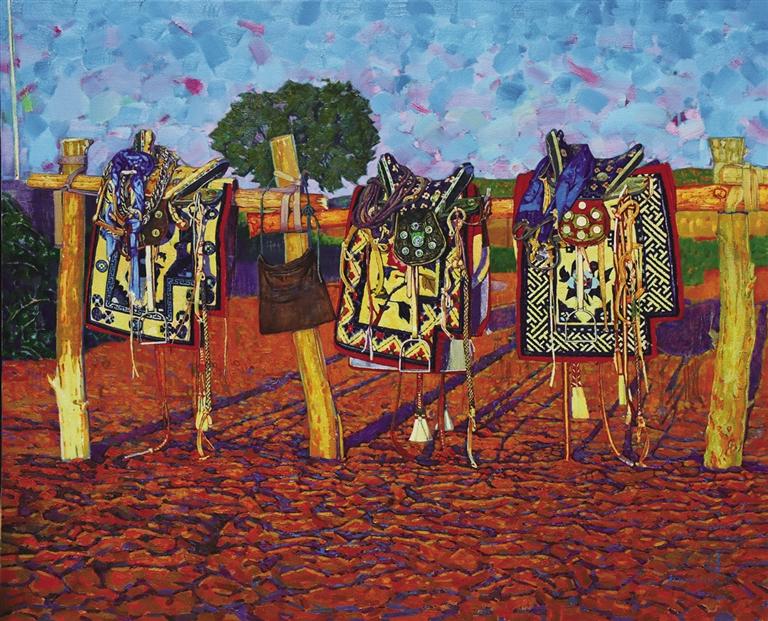 我循着北疆文化的脉络,将蒙古马鞍视作承载游牧文明的重要符号 —— 其意义早已超越单纯的实用功能,升华为凝聚文化基因与精神力量的图腾。我的艺术始终与蒙古马鞍深度交织:骑术实践让我洞悉不同马鞍的功能美学,草原文化的深厚积淀则为创作注入不竭的精神源泉。我着力于对物质与精神传统进行当代诠释,使油画成为勾连古今的艺术桥梁。