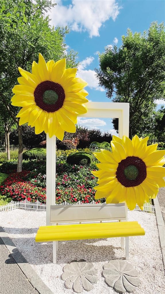 布局设计上,我们秉持“人本生态”的理念,打造了一条贯穿花境的沉浸式游径。起点处设置了互动景观小品——一个由向日葵环绕的框景装置,形成“框中取景、景随人动”的独特打卡场景,以此开启游客的“去野”初体验。漫步至花境中部,3个金属材质的小风车随风转动,为宁静的花境注入了灵动与趣味。夜幕降临时,太阳能灯光小品亮起,柔和的光线为花草披上一层温暖的外衣,延续着“去野”的温柔叙事。游径宽度控制在45—60厘米,采用透水铺装材料,既方便游客观赏,又能让雨水自然渗透,滋养土地。这条游径不仅串联起多维度的景观界面,更引导着人们从“看景客”转变为“景中者”,让每一次呼吸都能感受到自然的脉搏。