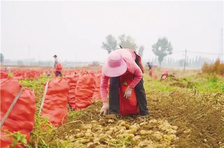 而在保合少镇保合少村的土豆田里,丰收的喜悦同样浓烈。村民们手持铁锹在田垄间穿梭,铁锹插入土中轻轻一撬,一个个圆润饱满、鲜亮的土豆从地里面翻滚出来,有黄皮的、红皮的……“看我挖的这个大土豆,快有我拳头大了。”村民赵大爷举起一个足有两斤重的土豆,向周围的人炫耀,引来一片欢笑。田边的三轮车上,装满土豆的编织袋堆得老高,车斗里还散落着几个刚挖出来的土豆,沾着湿土,透着新鲜。“今年种了5亩土豆,预计能收1万多斤,除了自己吃,大部分都能卖给收购商,算下来收入可观。”赵大爷擦了擦脸上的汗水,语气里全是满足。