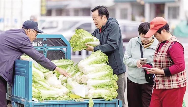 “家里人特别爱吃白菜,炖菜、炒菜都离不开它。”市民陈先生手里提着刚买的5棵白菜告诉记者,今年白菜品质上乘,菜叶饱满紧实,价格实惠。他原本想多买些,但家里储存空间有限,只好先买一部分应急,“反正价格便宜,后续可以随吃随买,很方便。”
