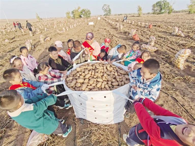 近日,在“中国马铃薯之乡”武川县的马铃薯基地,来自首府多所中小学的学生们手握锄头,弯腰俯身,在泥土中仔细寻找金黄的“宝藏”。这场由武川县教育局策划的“捡土豆劳动主题教育”活动,不仅是一次简单的田间体验,更是紧扣地域资源、响应市教育局“劳动教育本土化”要求的创新实践。活动精心设计了“知、行、悟、品”4个环节,成为劳动教育“三维育人”目标的生动写照。活动中,武川县农牧和科学技术局专家化身“农耕导师”,不仅为学生详细讲解了马铃薯的生长周期,还结合“农产品地理标志保护”知识帮助学生理解家乡土豆为何能走向全国。学生们在技术员的指导下,从“握不稳锄头”逐渐做到“精准挖薯”,在汗水中体会“一分耕耘,一分收获”。“烤薯品鲜”环节中,学生们亲自动手,将自己的劳动成果转化为“香甜滋味”,更加深了学生们对“劳动创造价值”的理解。“这堂劳动课比课本知识生动多了!”武川县第一小学学生王梓轩举着自己挖出的土豆说,“通过这次活动,我懂得了农民伯伯劳作的辛苦,更为家乡的土豆感到骄傲。”