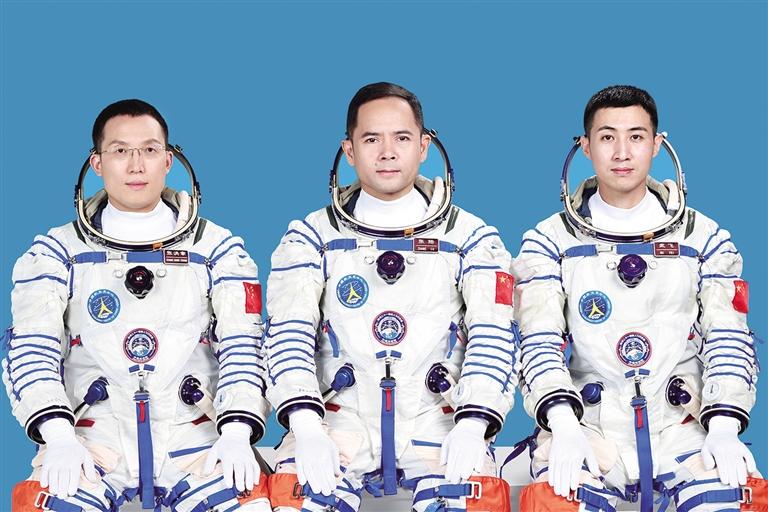 这是神舟二十一号航天员张陆(中)、武飞(右)、张洪章。