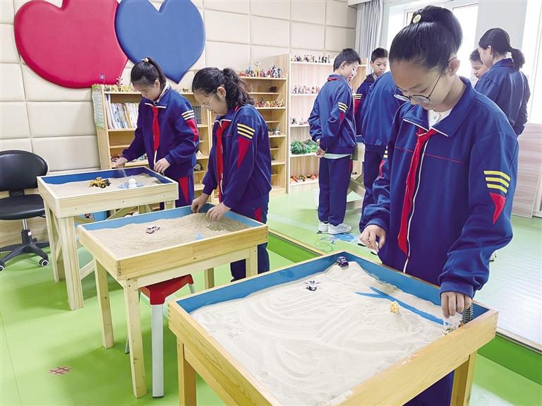 “我们的关爱室每天定时开放,学生们有烦恼就会来这里玩玩沙盘,说说心里话。”张珎说,“作为小学心理教师,我会根据学生的心理发展需求,设计有趣的绘画心理课堂,通过游戏、活动等方式,让学生在轻松愉悦的氛围中培养积极心理品质。”