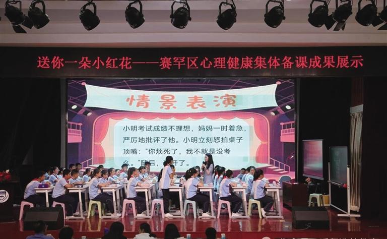 为提升心理健康教育的专业水平,呼和浩特市教育教学研究中心近日在赛罕区大学路小学举办了小学心理健康教育集体备课活动。赛罕区心理教研团队围绕“送你一朵小红花”主题,进行了展示课、说课及微讲座。活动通过线上直播向全国推送,为心理教师在亲子、师生及同伴关系辅导方面提供了可操作的实践方法。“这次活动为我们一线教学提供了专业而有效的指导,具有很强的实操性。”参与活动的大学路小学专职心理教师夏雪说。