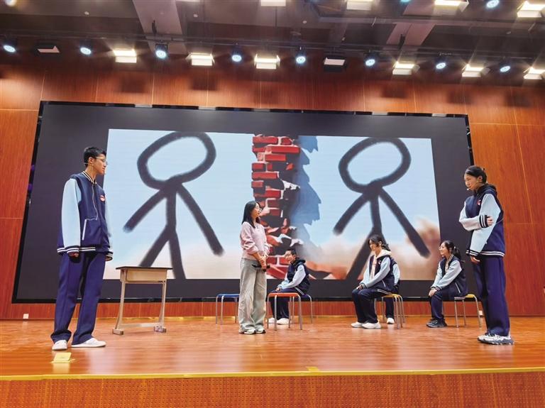 11月1日,呼和浩特市桥华学校举办了“心灵‘剧’会 剧暖青春”心理戏剧节活动。学生们通过自编自演的剧目,呈现“刷题”困境、精神内耗等中学生普遍面临的成长议题,引发广泛共鸣。该校心理教师晓敏介绍:“我们鼓励学生围绕校园生活自由创作,内容涵盖人际交往、情绪情感、人格发展及社会热点等。全班同学共同参与,即便是负责道具或扮演小角色,也能在过程中潜移默化地接受心理健康理念。这种形式深受学生欢迎,有助于他们在良好氛围中实现自我探索与成长。”