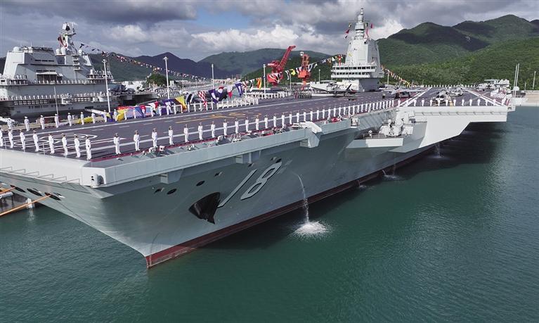 11月5日,我国第一艘电磁弹射型航空母舰福建舰入列授旗仪式在海南三亚某军港举行。
