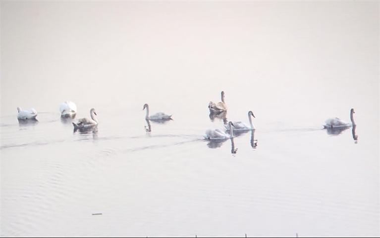 近段时间,和林格尔县石咀子水库迎来大批候鸟歇脚,除了白天鹅,还有灰鹤、赤麻鸭等。它们在湖面自由自在地嬉戏觅食,初冬的水库湿地呈现出一派生机勃勃的景象。