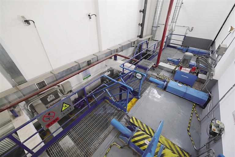 记者在细格栅车间看到,4台网板式格栅除污机正将污泥从污水中挤压出来,随后通过皮带输送至全密封污泥专用运输车,运往中国华能金桥热电厂。在那里,污泥将实现“华丽变身”。
