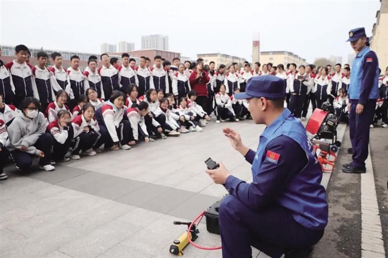 活动现场,大召消防救援站的指战员结合校园火灾典型案例,用通俗易懂的语言,向学生们详细讲解火场逃生技巧、日常防火注意事项、灭火器使用方法等实用知识,通过“理论+案例”的形式,让消防安全知识入脑入心,为学生们筑起一道坚实的安全屏障。