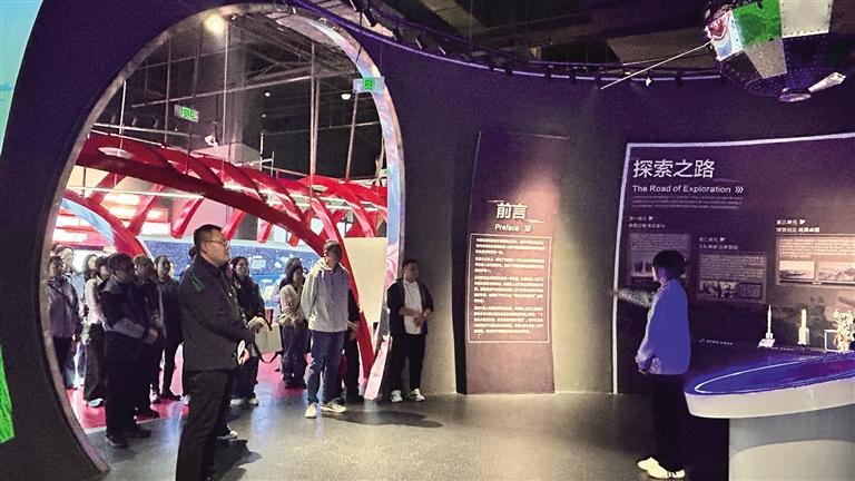 在航天展览馆核心展区,党员干部在讲解员的带领下全面了解了我国航天事业发展历程、重大科技成就及航天科技在民生领域的应用,并通过聆听理论宣讲,强化理论学习成效。