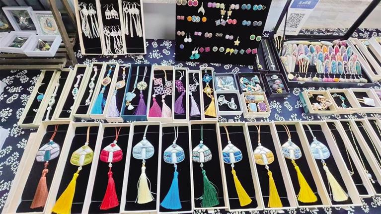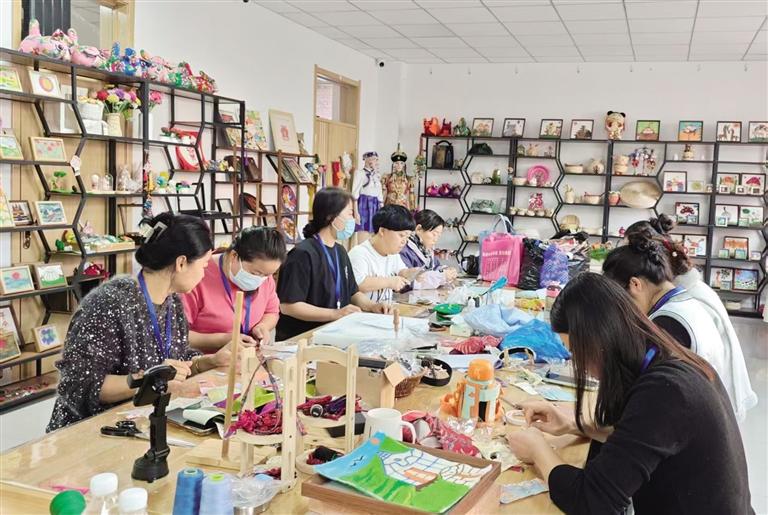 “90后”全职妈妈池小娟就是其中一员。她正在制作一款发箍,蓝色底布寓意草原蓝天,配以银饰与珍珠点缀。“学习宋锦和羊毛毡制作两个月来,这门手艺让我在照顾家庭的同时,找到了实现自我价值、增加收入的途径。”池小娟说。