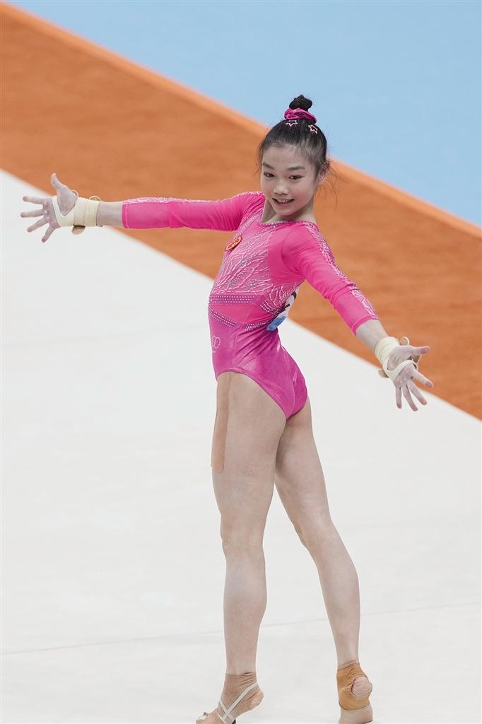 11月15日,广东队选手柯沁沁在自由操比赛中。最终,她获得女子个人全能冠军。