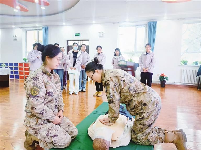 近日,内蒙古军区第二干休所医护人员走进内蒙古军区八一幼儿园开展了幼儿应急救护知识技能培训。