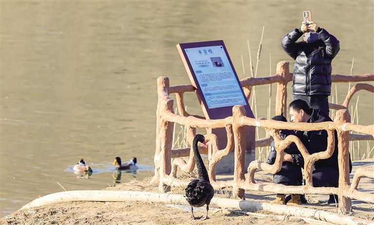 市民近距离观察黑天鹅