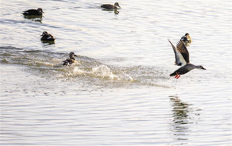 斑嘴鸭踏水嬉戏