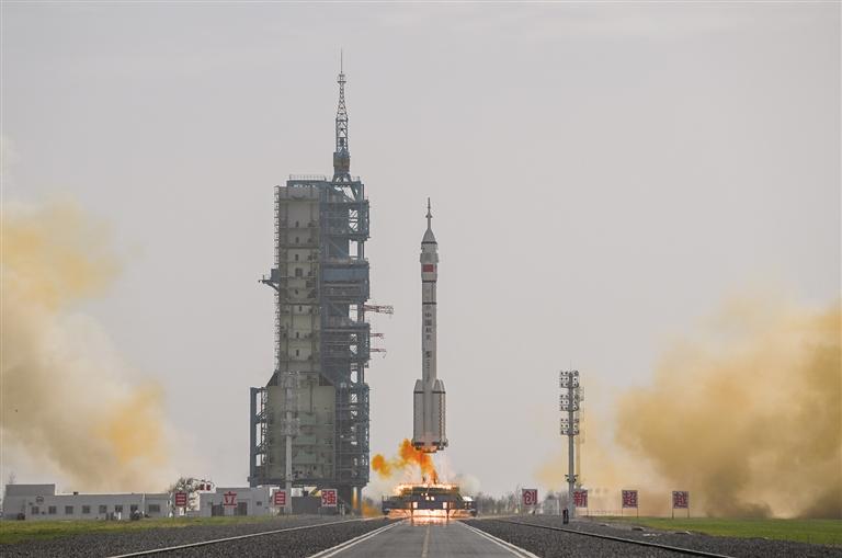 当日的酒泉卫星发射中心载人航天发射场,天气晴朗但伴有大风。“连日来大风天气频发,气象团队精准预判气象风险,为火箭发射方案提供了关键依据。”酒泉卫星发射中心张芳说。