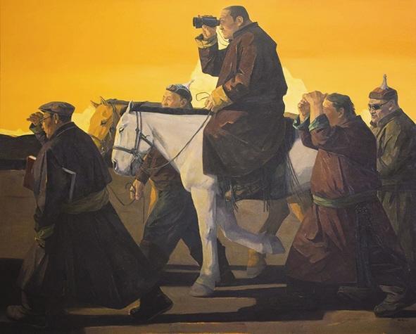 胡日查以其内敛而执著的艺术实践,在草原的苍凉底色上镌刻下深沉的精神图腾。他以减法凝练形式,以沉郁色彩与纪念碑构图构建精神场域,将草原符号升华为承载个体精神张力与生存哲思的当代表达。他深植于传统沃土,却能破茧而出,在传统与独创之间开辟出独特的艺术境界。其作品超越了地域风情的局限,直抵人类生存的普遍状态,在全球化喧嚣中守护着未被侵蚀的原始生命力的光芒。胡日查的画笔,最终指向的不仅是草原的过去与现在,更是在现代性浪潮中,一个民族乃至人类如何守护精神家园、确认自身位置的永恒追问。