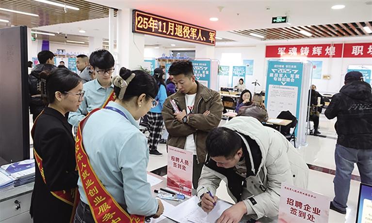 11月28日,第12场“戎归青城 职引未来”退役军人、军属专场招聘会在呼和浩特市社会化拥军服务示范园退役军人就业创业服务中心举办。