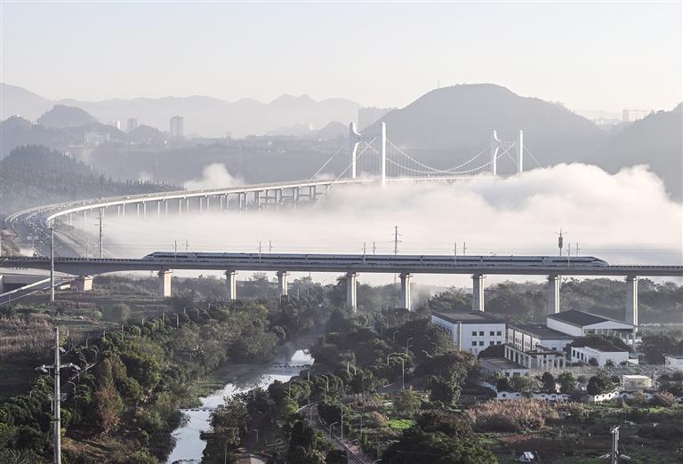 11月28日,贵州盘州至兴义高速铁路正式建成通车,标志着贵州实现省内各市州中心城市高铁全覆盖。盘兴高铁全长约99公里,设计时速250公里。此次盘兴高铁的建成通车,将进一步完善区域交通格局,对促进当地经济发展具有重要意义。