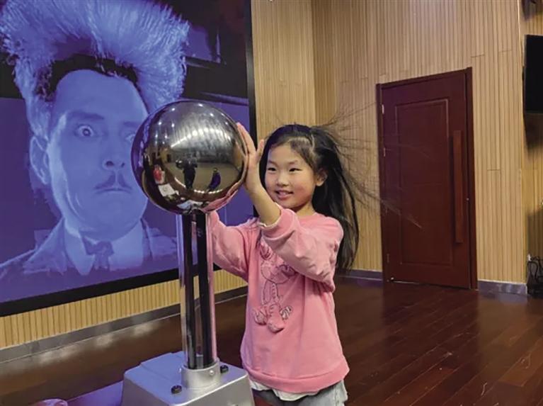 日前,内蒙古科技馆上演了一场精彩的“静电炫彩秀”科学实验秀。活动通过趣味实验揭秘静电原理,让130余名观众参与体验了兼具趣味性与知识性的科学盛宴。图为小朋友在活动中体验科学魅力。 ■?本报记者 杨永刚 摄