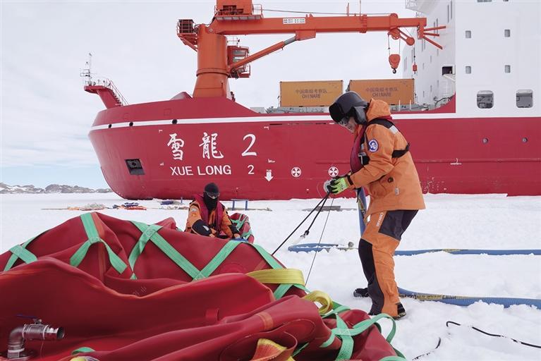 近日,正在执行中国第42次南极考察任务的“雪龙”号抵达南极中山站外围陆缘冰。“雪龙2”号已于北京时间11月25日率先抵达该区域。两船正协同开展中山站区域大规模卸货作业。