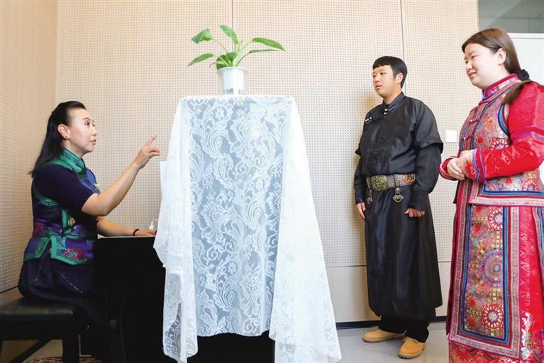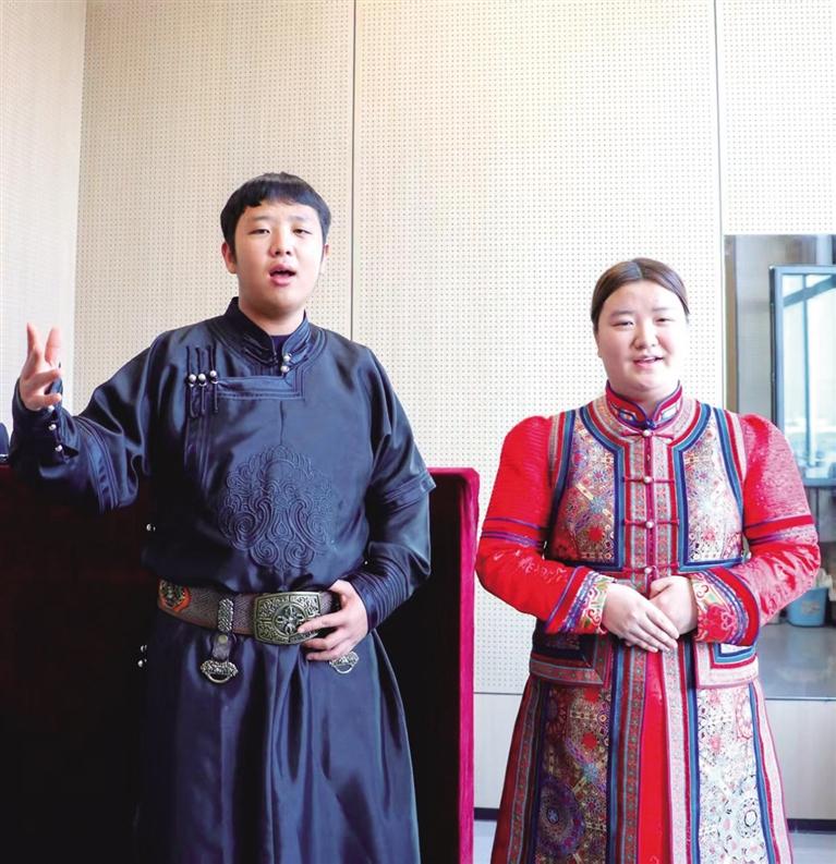 王悦回忆,刚上课时,她声音细小,登台就紧张,是格日乐老师每天督促她练习气息、录制演唱视频,逐帧纠正问题,让她逐渐找到自信。“现在过年回家,家人让我表演,我也能大方地唱整首曲目。”