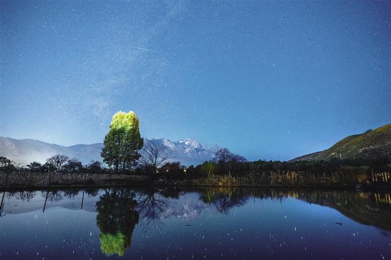 12月12日晚在云南省丽江市白沙镇拍摄的双子座流星雨。
