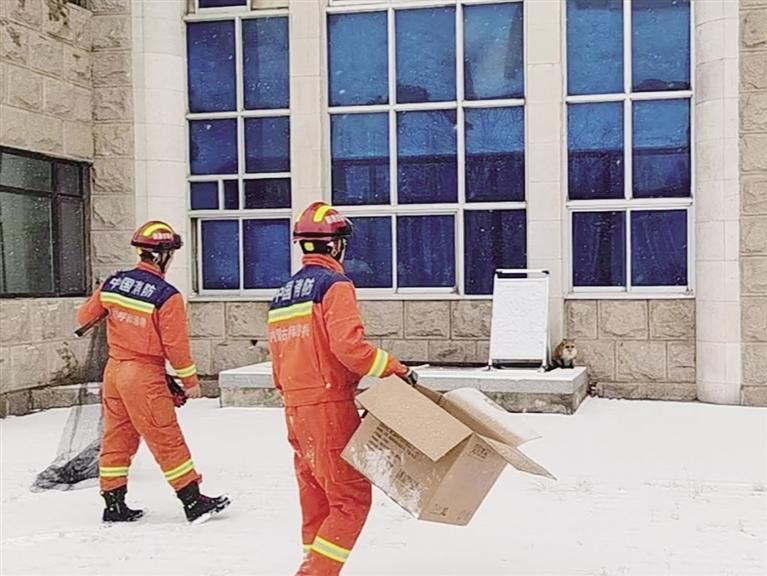 考虑到校园人流密集怕惊扰赤狐,又担心赤狐受惊伤人,校方第一时间联系了呼和浩特市消防救援支队金三道消防救援站。接到指令后,消防人员迅速赶到现场。此时赤狐正缩在教学楼旁,一有人靠近就灵活躲闪。指挥员立即制定“温柔围控”方案:先疏散周边师生,再由消防人员手持专用网具,一边轻声安抚,一边慢慢引导它往安静区域移动。不一会儿,这只赤狐就被稳妥送入网中。