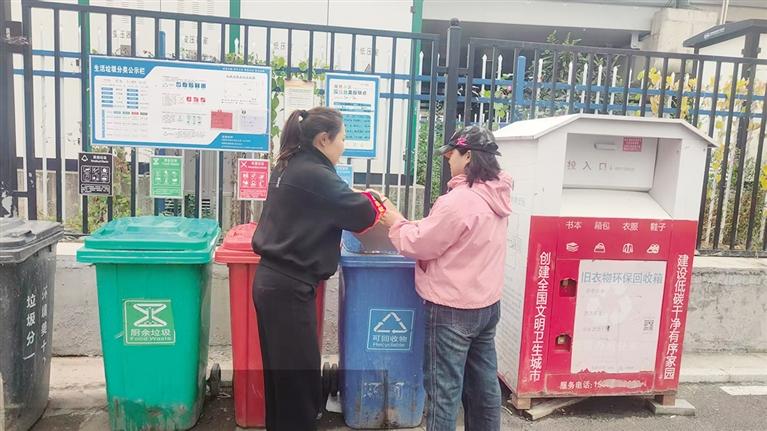 每天垃圾投放高峰时段,督导员们准时到岗,佩戴统一标识,一方面细致检查居民投放的垃圾,对未分类、错分类的情况进行现场指导,手把手教大家区分可回收物、厨余垃圾、有害垃圾和其他垃圾;另一方面向居民讲解垃圾分类的政策要求、分类技巧及环保意义,破解“分不清、投不对”的难题。针对老年人等群体,督导员还进行“一对一”讲解,确保分类知识入脑入心。“您好,废电池属于有害垃圾,要投到红色垃圾桶里。”督导员耐心提醒居民。自社区垃圾分类督导工作开展以来,这样的温馨提示每天都在各个投放点上演。