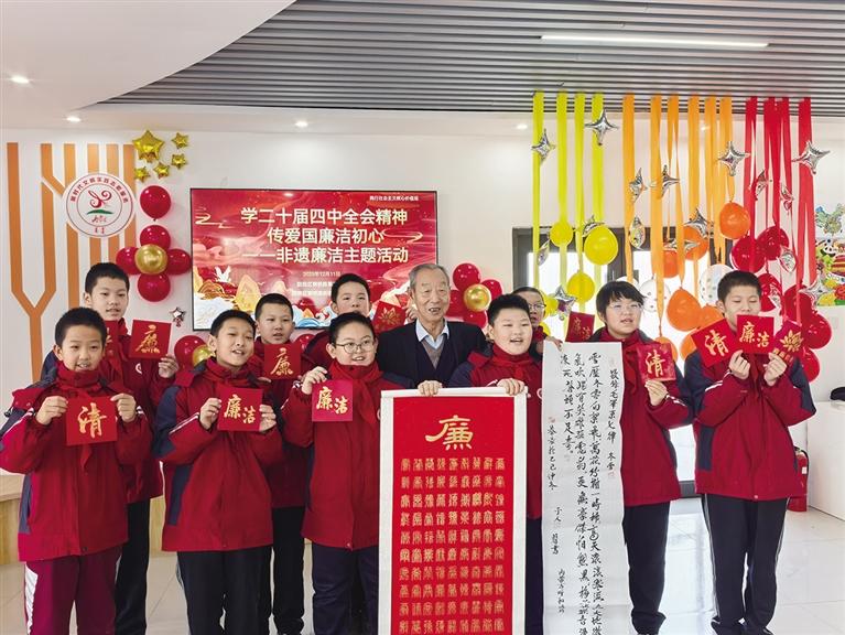 近日,钢铁路街道咱家社区联合回民区钢铁路第二小学、呼和浩特市铁路第一中学初中部,携手辖区老党员与公益小课堂书法班学员共同举办学二十届四中全会精神·传爱国廉洁初心——非遗廉洁主题活动。此次活动以党的二十届四中全会精神为主线,将“以老带新”的传承模式与非遗载体相结合,把廉洁教育作为重要环节融入其中,既实现了理论学习的代际传递,又让全会精神在沉浸式体验中落地生根。 ■本报记者 祁晓燕 摄