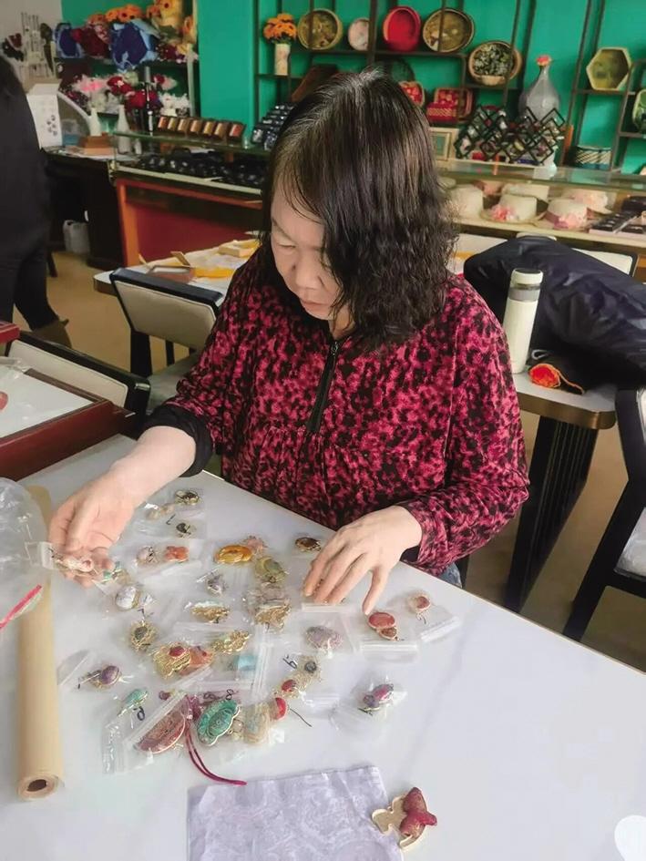 走进“美丽工坊”,映入眼帘的是琳琅满目的手工艺品。色彩绚烂、工艺精巧的花丝镶嵌发簪与蝴蝶胸针,流淌着东方韵味;融入自然之美的干花手工滴胶挂饰与耳环,兼具颜值与实用功能;绣着吉祥纹样的创意徽章、装饰相框,寄托着美好寓意;还有质感扎实、环保耐用的藤编篮筐……这些产品种类丰富,各具特色。然而,比作品更动人的,是创作者们的故事。
