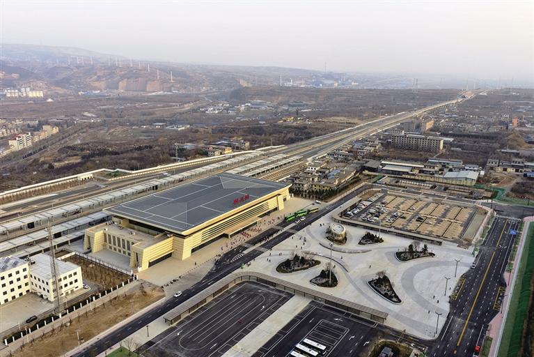 12月24日拍摄的西延高铁铜川站(无人机照片)。