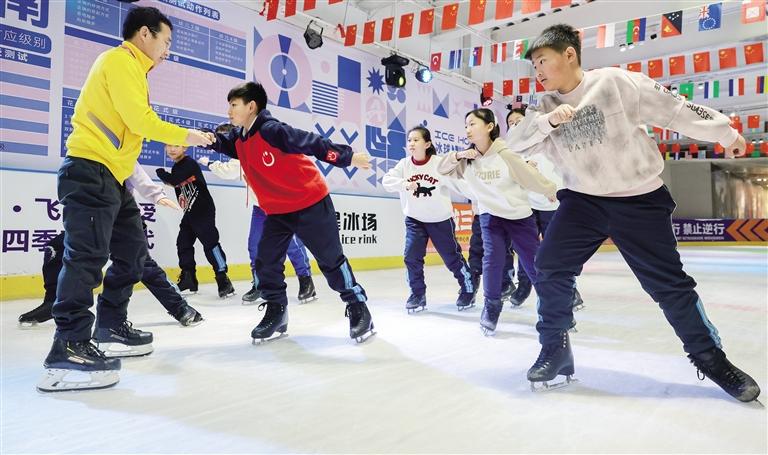 入冬以来,玉泉区小召小学将三至六年级的体育课搬进滑冰场,让孩子们在冰上学技能、练意志、享乐趣,感受冰雪运动的魅力,推动校园冰雪运动普及。