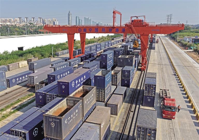 近日,记者从国铁南宁局获悉,2025年西部陆海新通道班列发运集装箱货物142.5万标箱,同比增长47.6%,首次实现年发运量突破百万标箱,再创历史新高。