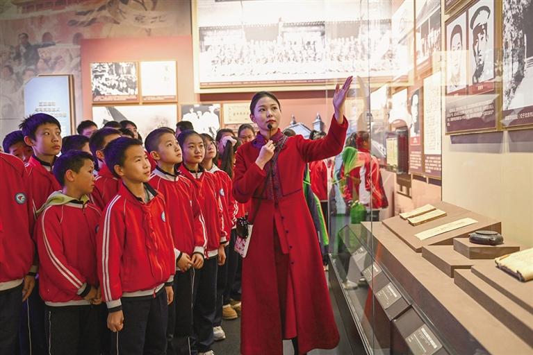 1月10日,赛罕区金桥小学组织学生走进内蒙古博物院“解放之路”展厅,开展“红色铸魂”主题实践活动。在讲解员的引导下,学生们驻足于展厅珍贵的文物前,认真聆听每一件展品背后的动人故事,在历史的浸润中追寻红色足迹、传承革命精神。