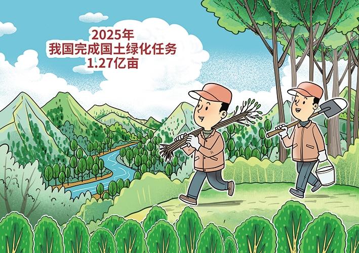 记者1月15日从全国林业和草原工作会议上获悉,2025年我国完成国土绿化任务1.27亿亩,其中营造林5345万亩,退化草原修复治理7390万亩。目前全国森林覆盖率达25.09%,森林蓄积量达209.88亿立方米。