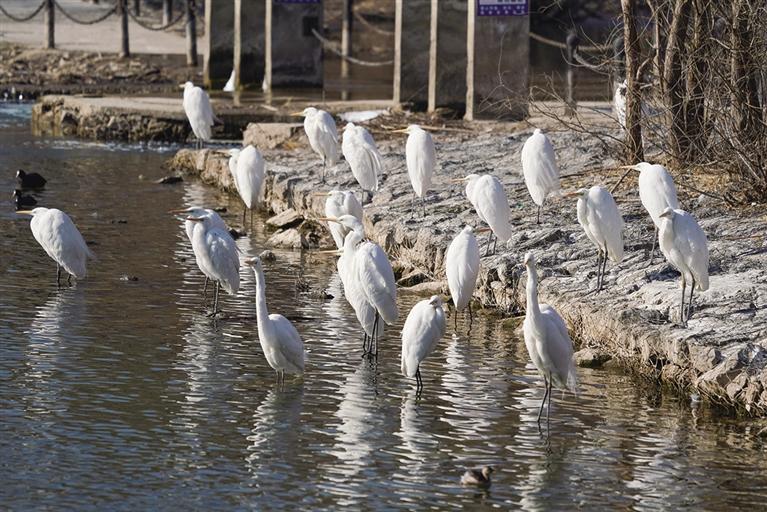 冬日,成群的白鹭在位于山西省太原市的汾河湿地公园内嬉戏、觅食,吸引不少市民驻足观赏。近年来,随着汾河流域生态环境不断改善,越来越多的候鸟选择在这里栖息越冬。 ■新华社记者 杨晨光 摄