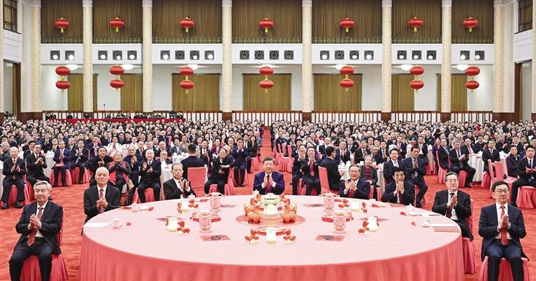 2月14日,中共中央、国务院在北京人民大会堂举行2026年春节团拜会。党和国家领导人习近平、李强、赵乐际、王沪宁、蔡奇、丁薛祥、李希、韩正等同首都各界人士欢聚一堂、共迎佳节。 ■新华社记者 谢环驰 摄