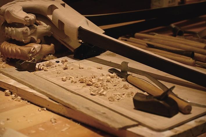 步入展示区,数十把造型各异的马头琴依次陈列,既有古朴典雅、保留传统形制的经典之作,也有融合现代审美、适配当代演奏需求的创新款式,错落摆放间尽显其独特风情。琴箱上精雕细刻的卷草纹、云纹等纹饰,经匠人手工打磨愈发温润细腻;琴头栩栩如生的马头雕刻,马眼炯炯有神、鬃毛飞扬灵动,每一刀都凝聚着匠人对草原的敬畏与热爱。展厅墙上,一组组珍贵照片记录着制琴师与马头琴演奏家切磋技艺的瞬间,也见证着这项被列入国家级非物质文化遗产代表性项目名录的技艺,在赛罕区扎根、生长与传承的历程。