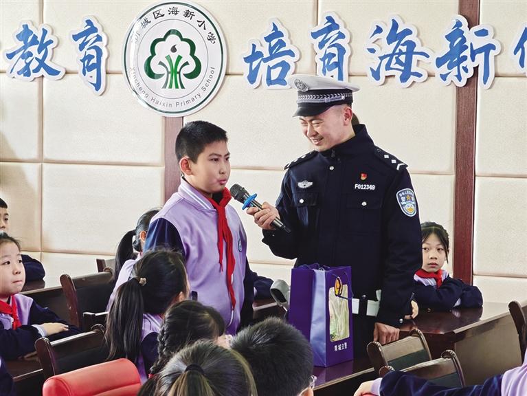 3月9日,新城区东风路街道新时代文明实践所联合呼和浩特市公安局交通管理支队新城区大队、呼和浩特市卓地不动产评估咨询有限责任公司及海东路社区新时代文明实践站,走进海新小学,共同开展“文明培育润童心 安全出行伴成长”新时代文明实践交通宣讲活动。