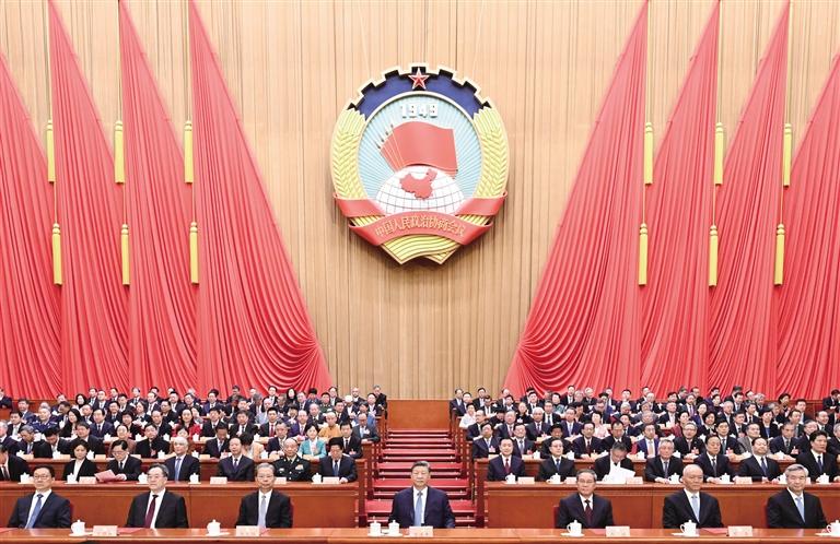 3月11日上午,中国人民政治协商会议第十四届全国委员会第四次会议在北京人民大会堂闭幕。全国政协主席王沪宁主持闭幕会并讲话。 ■新华社记者 黄敬文 摄