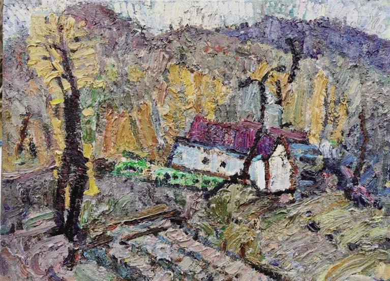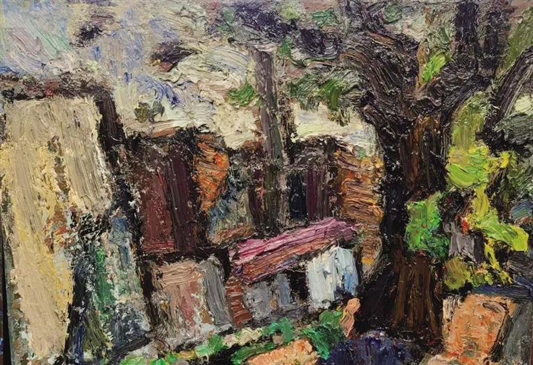 从形式风格的自觉选择与构建方面来看,艺术家在对形式元素的锤炼中,并不是被动接受既有的,而是主动地、刻意地思考与选取、提炼与己心智相符合的理念。这种锤炼过程是反复且精心求实才会有的精神品质,它是刻在骨子里的一种执着,目的是寻找最能表达内在意蕴的形式样态。在这种具有“锻铸”式的个人风格的体系中,这种形式不仅指表面的视觉效果,更是指支撑这些视觉效果的内在结构逻辑,也就是我们感知到的画面形态构成、色彩组合、笔触韵味等。这种采用的近乎膨胀式构图,更显其画幅所呈现出的视觉感知张力,在被表现撑满画面的所有物象景致中,显现出一种金属锻铸的属性意味,以其厚重沉稳的微妙对比色调,打破了古板的传统焦点式透视,采用散点错落构成的样式,却又不失自然形态基本要素。在这种被抽象化了的具象景致中,更增添了一份神秘莫测的深邃意境,使得画面意趋有一种庄重的静默感。这种看似趋于“锻铸”般的样态形式语言意味着风格的成熟和稳定。其已成为一种高度个人化的“符号”或“指纹”样式,具有强烈的辨识度,让人一看即知作者是何许人也。