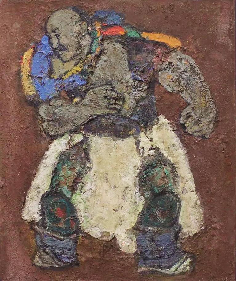 正如艺术家本人所说:“我就是要做一个特立独行的、默默无闻的,但是画出来的画,像锤子一样在泥土里面砸出坑的艺术家……”一个艺术家能够如此袒露自己的创作心路轨迹,是何等的坦荡与自信。这种意识的存在与形成,无疑是一种强调艺术创作中精神内核与形式语言双重锤炼的创作理念所呈现的意志,它既包含对传统技法的深度传承,又体现了艺术家通过个性化表达实现风格的凝练与升华。基于此,这也促使我对砂金的作品有了更新的认识。当我们面对其作品时,显然,它给予我们的是一种力量的存在体验,仿佛注入我们身体内的一种气之贯通的能量在波动,自然而然地随之作品而振奋起来。通过逐幅欣赏,那“锻铸”般的结构样式,看上去真是有一种被锤炼的视觉美感,在那斑驳的笔触之间,随形而渐趋推晕的厚重色彩基调上,画面的分量感凸显十足,使得每幅作品都充满了力量美感的视觉冲击表现张力。毫无疑问,这是一种叩击心灵、发自本能表达欲望所带来的精神享受。看似画家仅仅是手持一支画笔在那里作画,但殊不知,此时的画家心理却是在与色彩及画幅界面进行着对话与交流,一定是处在一种非常默契的情感交融状态之中,每一笔都敲击着艺术家心底深处最为敏感的神经细胞。这种互动交融的关系,是无需添加任何杂念的直接自然流露,是完全排斥掉了那些外在的程式化模式,一心专注于艺术心路的归途,其寻找着心中那份最真实的自我。这种感觉是最爽快的情绪宣泄,看那状态,一定是非常洒脱的人生体验。