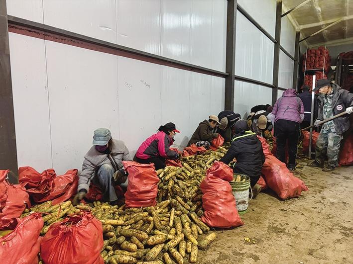 近日,记者走进赛罕区黄合少镇后窑子村有机胡萝卜保鲜库基地,映入眼帘的是一派繁忙景象:20余名工人正忙着分拣、装袋(见图),一旁的成品库内,盒身印有“有机品质 营养健康”字样的包装箱整齐码放,即将发往全国各地。