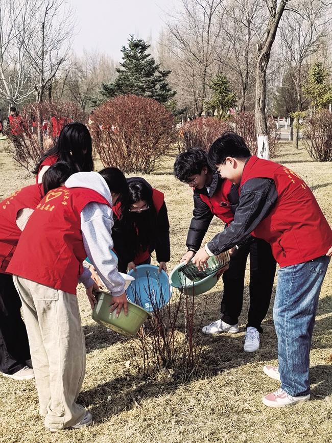 3月12日,呼和浩特职业技术大学开展了“青春添新绿,志愿暖校园”植树节护绿活动,百余名青年志愿者参与。活动现场,志愿者分工协作,完成树木浇灌、校园环境清理等工作,以饱满的热情践行护绿行动,彰显新时代大学生的风采与担当。